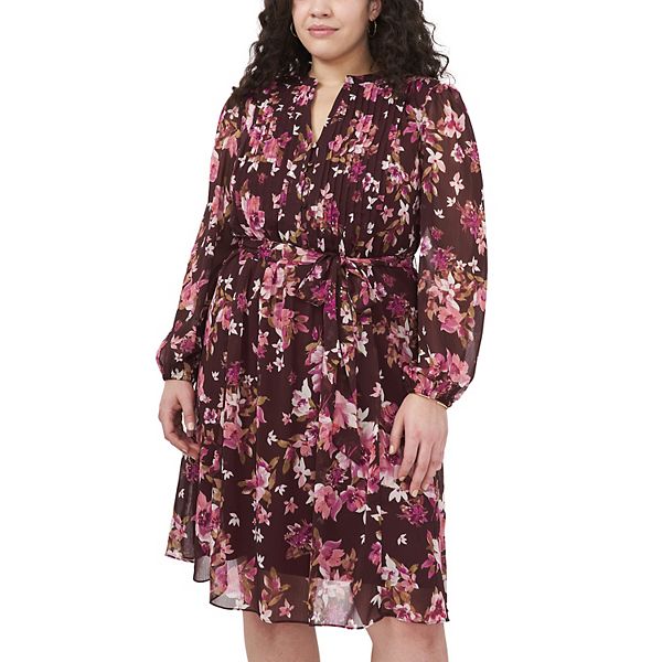 Plus Size Chaus Long Sleeve Pintuck Shirt Dress