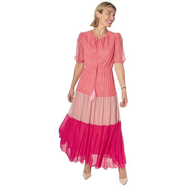 Women S Taylor Dress Colorblock Tassel Accent Mesh Maxi Dress